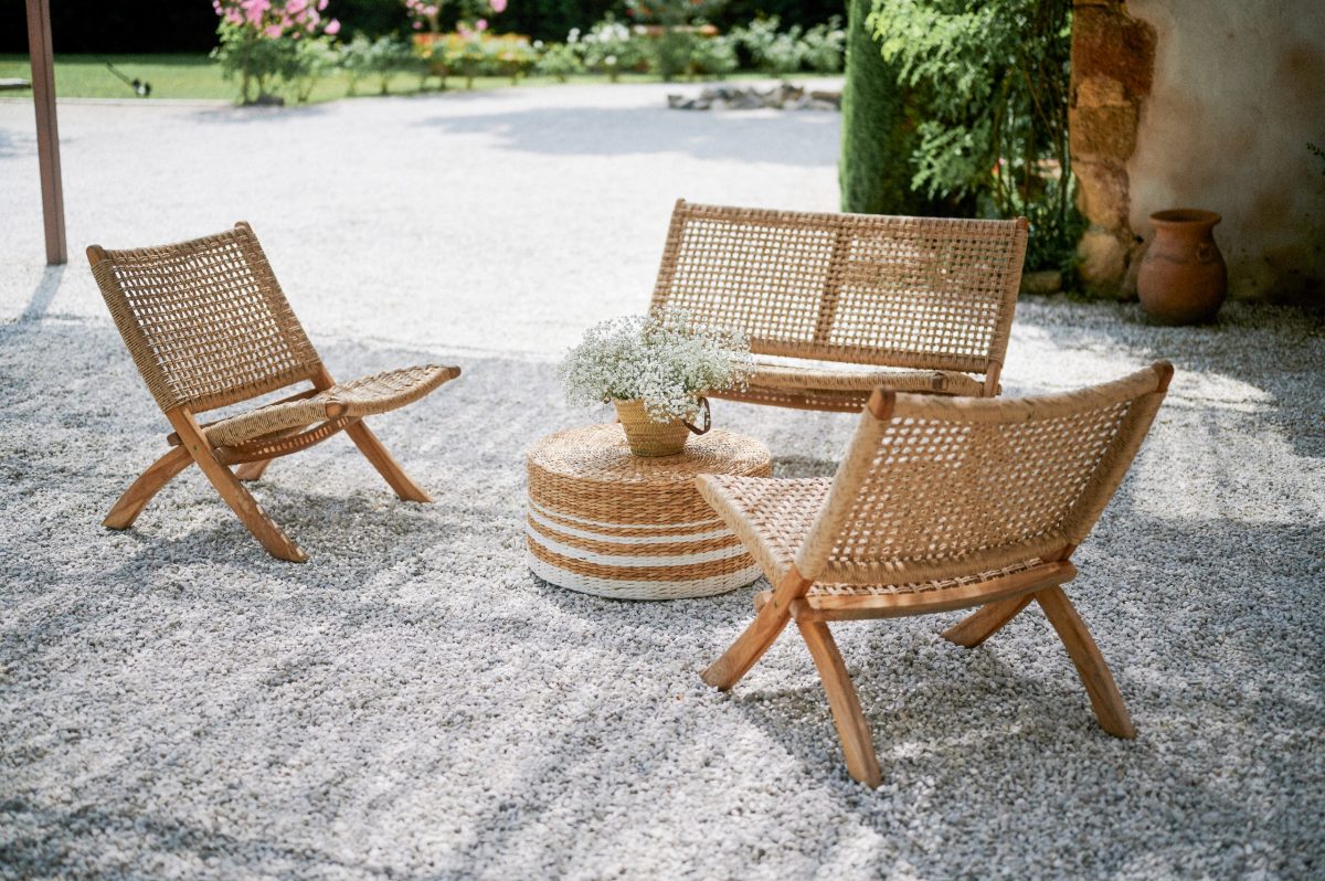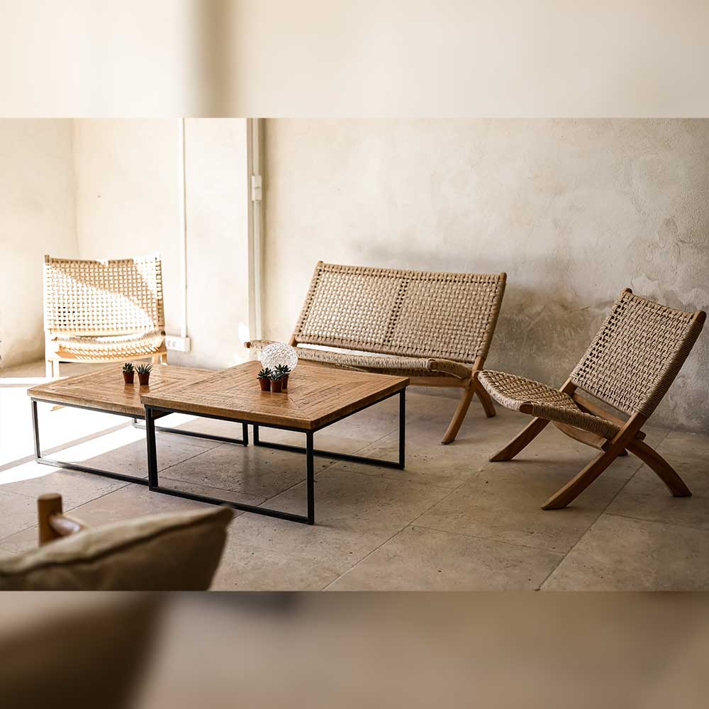 - Table basse tressée ou gigogne disponible séparément pour un rendu personnalisé et distinctif.